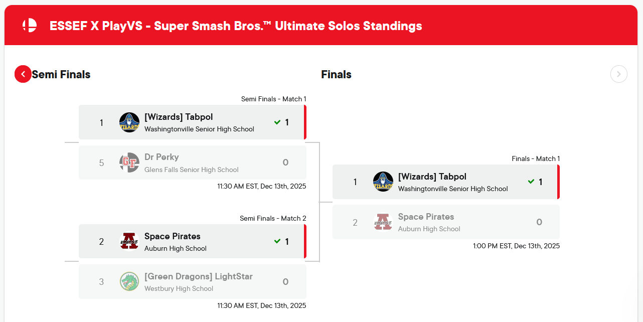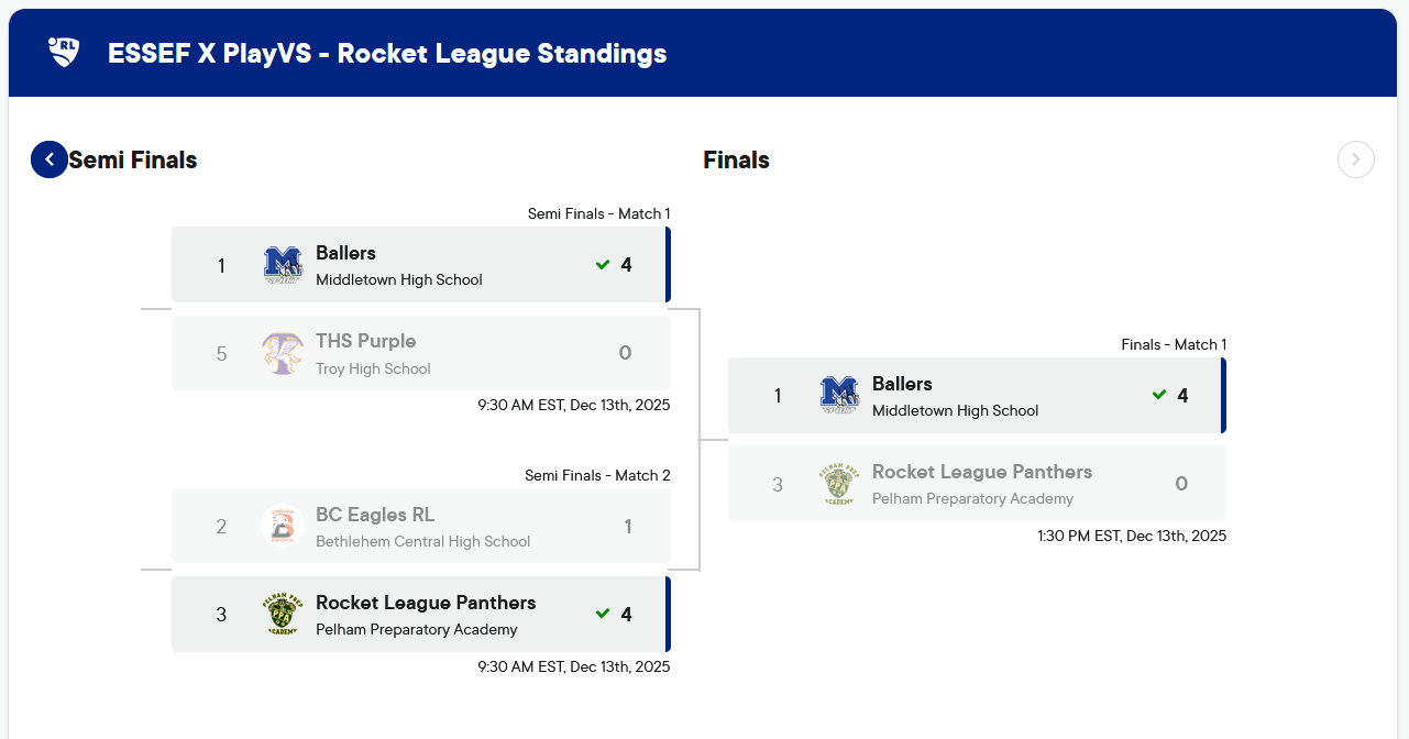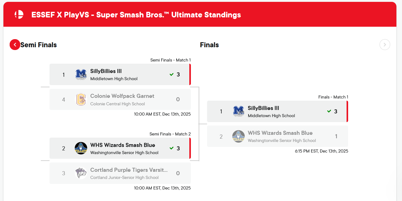Syracuse University Schine Center, December 13, 2025: Congratulations to our many NYS High School Esports teams who contributed to a spectacular day of gaming for our Fall 2025 Championship! A special shout out goes to our Bracket finalists and winners! The same holds for our sponsors, coaches and organizers from competing schools, as well as our amazing collegiate hosts for offering up their first class Esports facilty! Stay tuned to this website for more information and images captured from our exciting day. Way to go Gamers! For a complete recap of the event, please go to the Tournament Page, here.